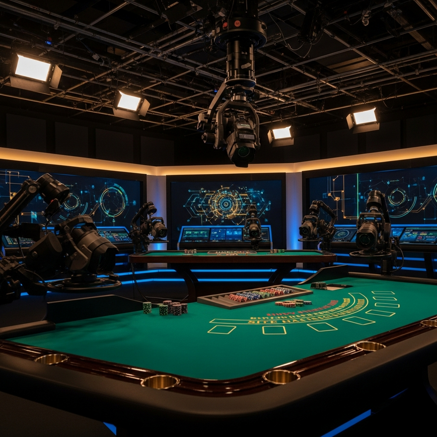Keajaiban live casino kami bermula di studio yang dibina khas untuk menangkap suasana sebenar kasino darat yang premium. Jangan anggap ini sebagai bilik biasa dengan sebuah kamera; ia adalah studio siaran berteknologi tinggi yang didedikasikan sepenuhnya untuk permainan. Persekitaran terkawal ini menampilkan pencahayaan profesional, beberapa kamera HD pada sudut strategik, dan peralatan kasino asli, termasuk roda rolet peraturan, meja blackjack, dan susun atur baccarat.